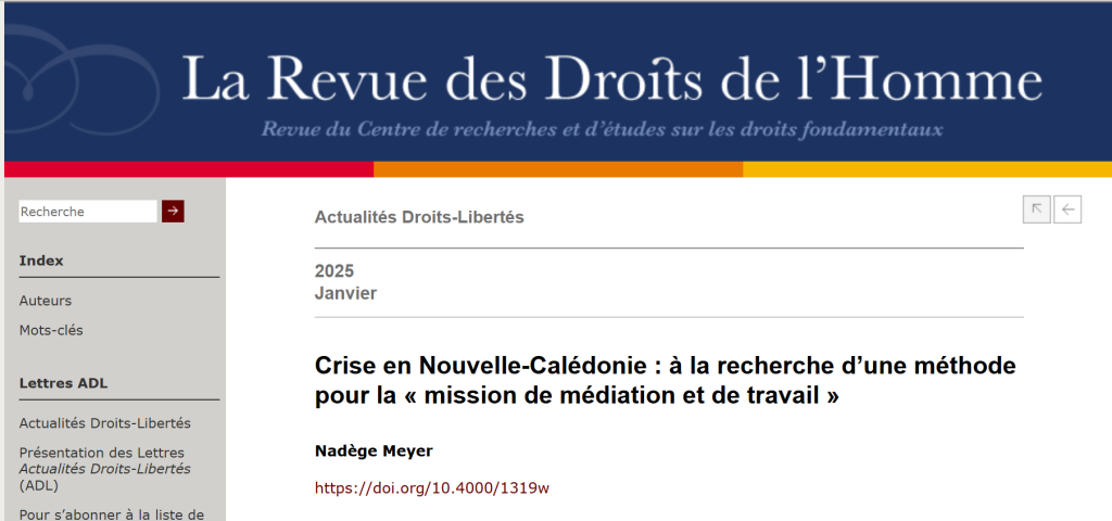 Depuis l’année 2023, le LARJE porte le volet calédonien du projet de recherche international Inclusive Peace. Cette recherche transversale associe le LARJE à des laboratoires de recherche anglais, canadiens et japonais. Ce projet explore les dynamiques du partage du pouvoir dans différents États ou collectivités présentant la caractéristique de régir des « sociétés profondément divisées » (deeply + Lire la suite