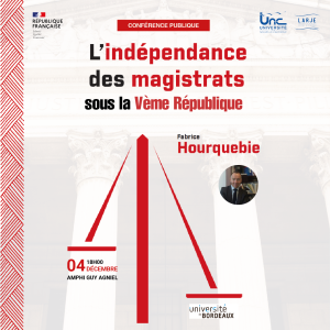 Conférence publique sur « Quelle indépendance pour les magistrats sous la Vème République ? » du Professeur Fabrice Hourquebie, le 4 décembre 2025 à 18h à l’UNC
